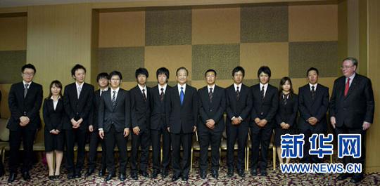 上智大学学生代表和SMAP成员感谢温家宝的鼓励,表示愿与中国青年加强交流,为两国友好事业添砖加瓦。(记者 田帆 马杰)