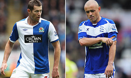 布莱克本的布雷特-埃默顿和伯明翰队长史蒂芬-卡尔。两支球队都尚未摆脱从英超降级的危险 图片来源:Michael Steele/Shaun Botterill/Getty Images