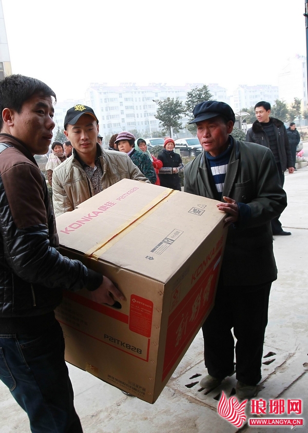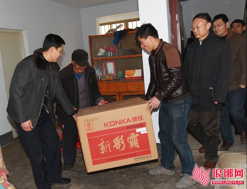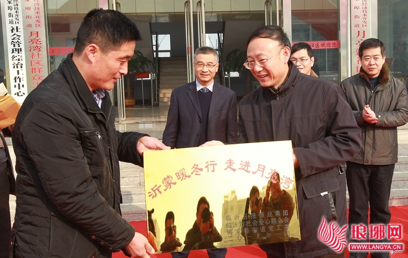 新春佳节即将来临之际,临沂日报报业集团出资购买了50台电视机,无偿赠送给50户月亮湾社区困难居民; 临沂市民政局拿出15000元专项资金资助贫困户;临沂市三方食品有限公司为50户困难群众送去价值4000元的50箱水饺;著名书法家陈金来、王文祥、崔维海、常巨山还现场为月亮湾居民写春联,送“福”字。
