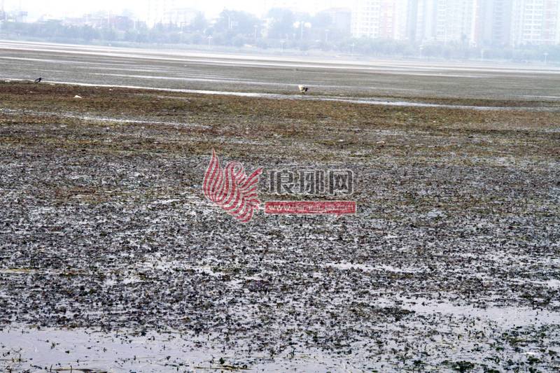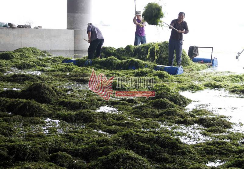 还没有打捞的水面漂浮着一层厚厚的水草。