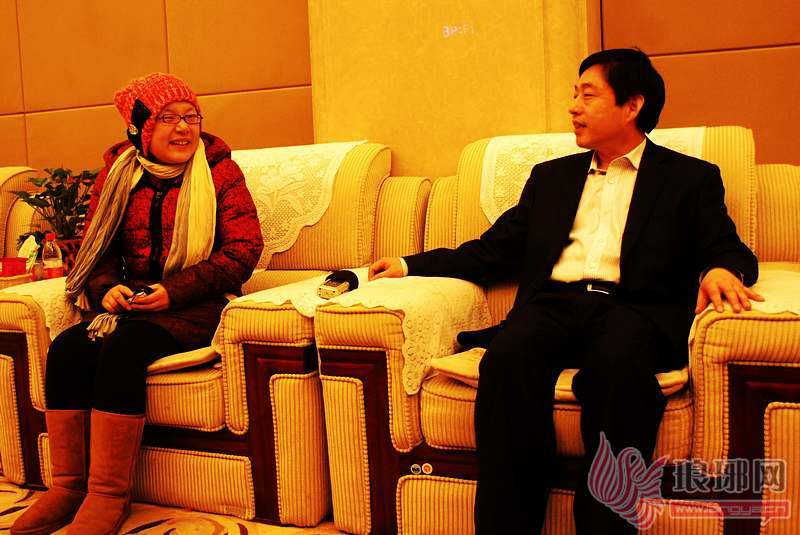 临沂市委常委、市委组织部长李刚在临沂飞机场接待室,与张广秀亲切交谈。
