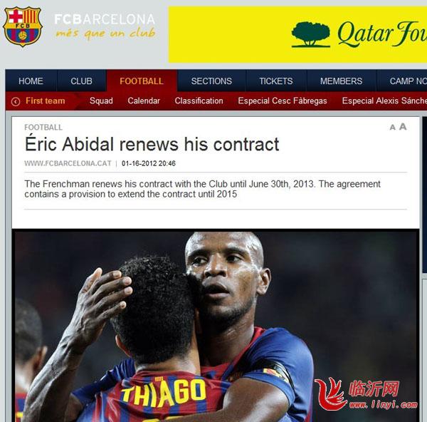 北京时间2012年1月17日凌晨,巴塞罗那官方宣布,队内法国铁卫阿比达尔与俱乐部续约至2013年6月。据悉,阿比达尔新约中包含自动续约至2015年的附加条款。
