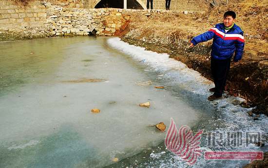 随后李斌带记者来到距离村子1.5公里远的一处水塘,水塘就在路边,水面上结了一层冰。一位路过的村民告诉记者,水塘是一处废弃的矿坑,积水很深。