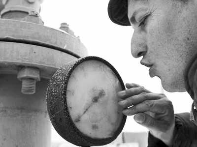 2009年1月7日,在斯洛伐克东部城镇大卡普沙尼一处边境天然气站,一名员工清理读数为零的气压表。