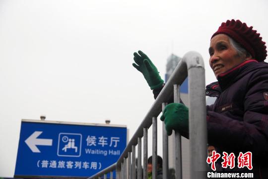 重庆龙头寺火车站,一位年迈的母亲在检票口外和已经进入候车厅的儿子挥别。 陈超 摄