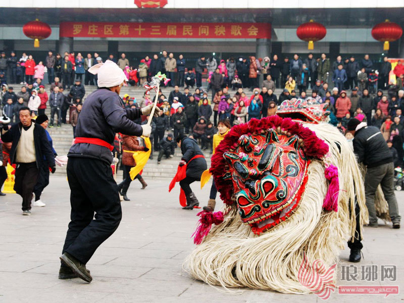 锣鼓声声,彩绸舞动。1月29日,罗庄区第13届民间秧歌会在区人民广场隆重上演。来自全区的17支秧歌表演队逐一登台亮相,通过秧歌、舞龙、扑蝴蝶等多种形式,为节日里的人们带来一场丰盛的文化大餐。红红火火的秧歌感染了在场的每一位市民,大家情不自禁地跟着锣鼓扭起来,节日的人民广场变成欢乐的海洋。