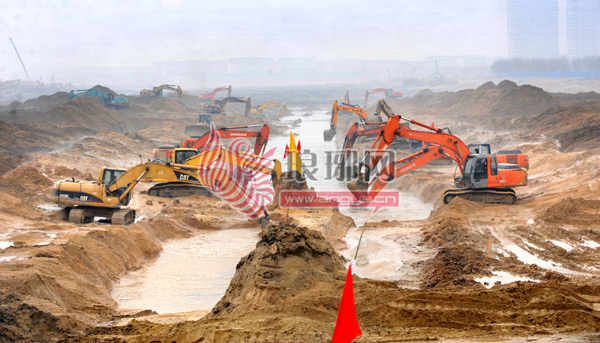 站在临沂市北城新区滨河大道眺望三河口,数十台挖掘机挥舞着长臂在施工现场内忙碌,壮观的场面已让人感觉三河口河底隧道工程施工进入白热化。随着隧道工程基坑排水结束,本月25日起,工程的基础开挖全面开始,这也标志着隧道工程的主体工程正式动工。