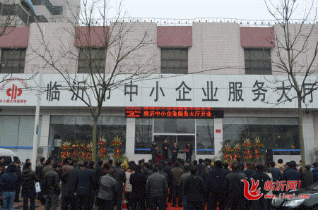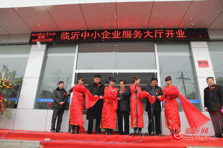 在欢快的乐器曲和喜庆的鞭炮声中,市政府领导慕增利同志、朱承增主任、张贤德书记为临沂市中小企业服务大厅开业剪彩。