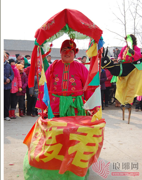 郯城县胜利镇南新汪村的村民在表演旱船。