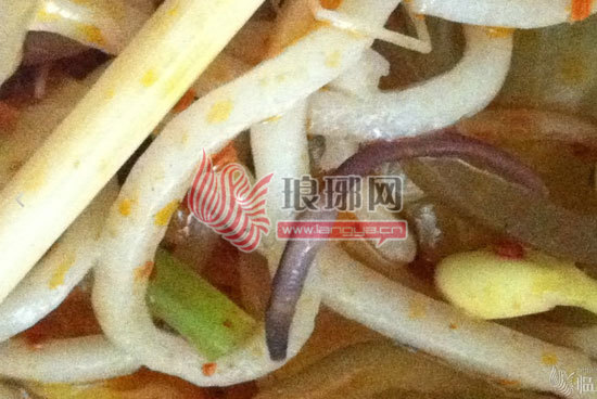 1日上午,记者联系到了发帖人“路人丁”。“路人丁”告诉记者,31日上午12时左右,她和同事来到位于沂蒙路广场附近的一家福烫吧购买麻辣烫。当她们回到办公室享受麻辣烫的美味时,同事查女士突然发现菜里有一条黑色的东西,仔细一看原来是一条煮熟的“蚯蚓”,令她们当即作呕。“当时我们还以为是紫甘蓝呢?可用筷子夹出来一看却是一条‘蚯蚓’,实在太恶心了,现在想想当时的情景,胃里都还像‘翻山倒海’似的。”网友“路人丁”说。