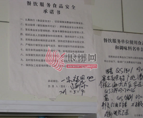 店内张贴的食品安全承诺书。