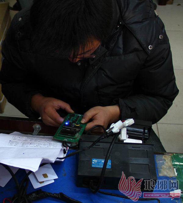 检定站工作人员对计价器进行调试。