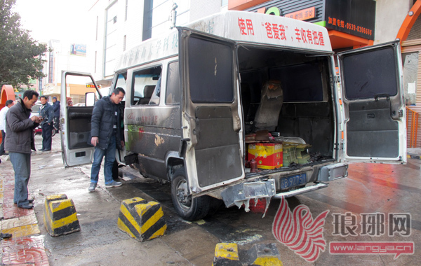 1日下午3点30分,市民姜女士拨打本报热线反映,在市区银雀山路与沂州路交会处附近的慧谷倾城小区门前,一辆停靠在门口的依维柯发生自燃,并伴有响亮的爆炸声。接到线索后,记者迅速赶往了事发现场,赶到时,火情已经被及时赶到的消防人员扑灭。从自燃车辆的外观来看,车况还算完整,似乎并没有发生太过猛烈的燃烧,除了汽车外部和车厢内被烧得黢黑以外,车头部分相对比较完好,发动机等主要部件并没有燃烧过的痕迹。