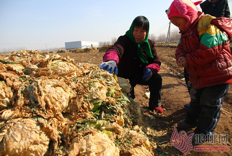说话间陈大娘和老伴徐大爷,将记者带到自家的菜地里,陈大娘随手从白菜垛里抽出几棵大白菜,虽然白菜表层已经干瘪,但剥去外面一层,里面还是十分鲜亮水灵。“这白菜只看外表没的说,问题就出在里面。”说着陈大娘用菜刀将白菜切开,果然是金玉其外,败絮其中,菜的内芯都不同程度的枯黄萎烂了。陈大娘捧着切开的大白菜,心痛地说:“白菜个头长得很好,但里面几乎都这样,你说咋卖呀!”