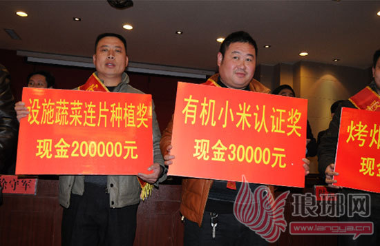 该街道在经济社会发展中,坚持以只争朝夕的工作状态,以雷厉风行的务实作风,坚持率先发展、科学发展、和谐发展,坚定不移地抓好工业投入、招商引资、农民增收、城镇建设、财政税收、可持续发展六个重点,全街道经济社会实现又好又快发展,各项经济指标保持较高的发展水平。全街道实现GDP 46亿元,固定资产投资19亿元,财税收入达到1.1亿元,农民人均纯收入7100元。工业投入再创新高,达到16亿元,并且创新工作思路,科学规划建设了城东中小项目聚集区。在这次会议上,重点对招商引资、纳税大户和优秀企业厂长等进行了表彰奖励。平邑县弘宇化纤有限公司获得招商引资奖励30多万元,平邑县莲花山建筑公司和宝业建筑公司获得功勋企业称号,并且分别获得15万元和6万多元的奖励。尤其可喜的是,作为对农业经济的重视,分别对讲理村有机蔬菜合作社的有机蔬菜认证、黄草有机小米合作社的有机小米认证,各奖励现金30000元;对2011年新发展设施蔬菜、连片种植20个标准大棚的讲理村,奖励现金20万元。