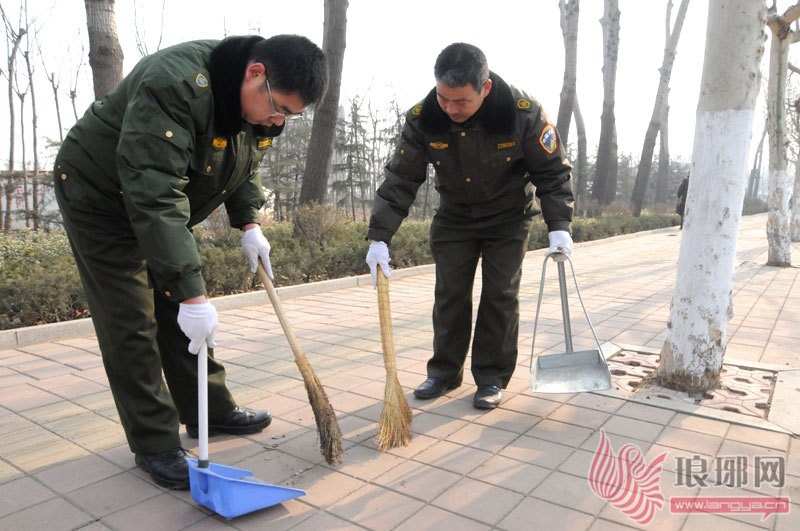 临沂市交通局的机关干部在海关路清扫路面卫生。