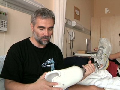资料图:匈牙利登山家艾罗什一条腿被截肢,要靠义肢行走