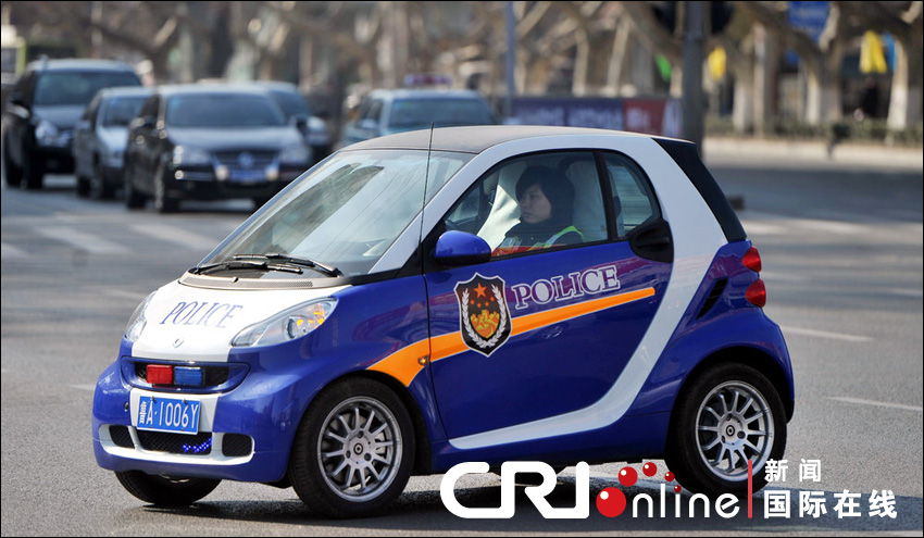 济南女交警开奔驰Smart警车上路巡逻(高清组图)