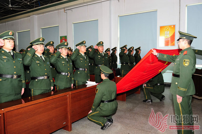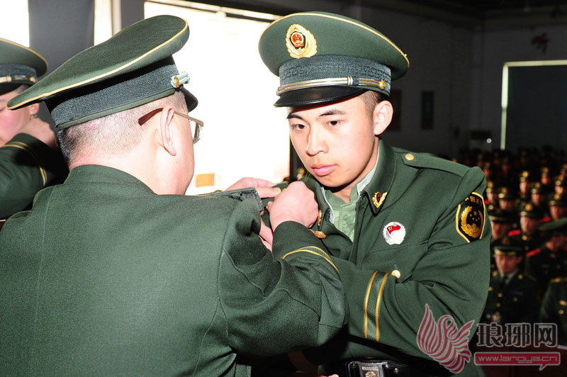 2月8日下午,武警临沂支队举行2012年新兵授衔宣誓仪式,百余名新兵被授予武警列兵警衔。
