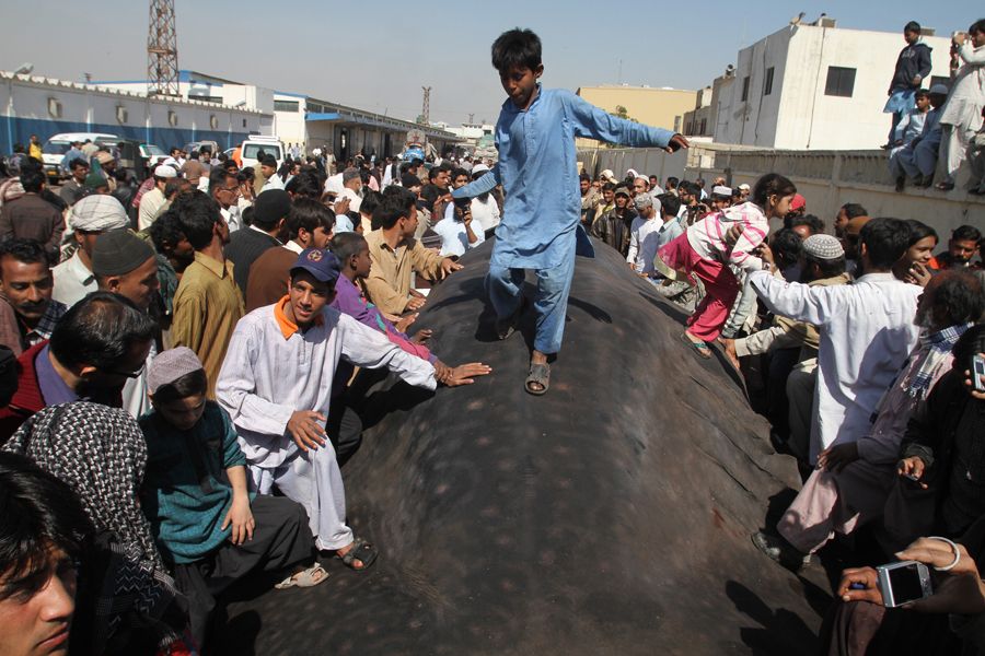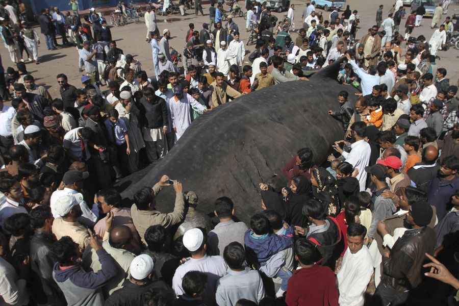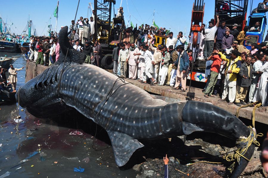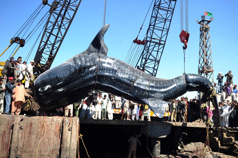 巴基斯坦卡拉奇码头发现近13米长死亡鲸鲨