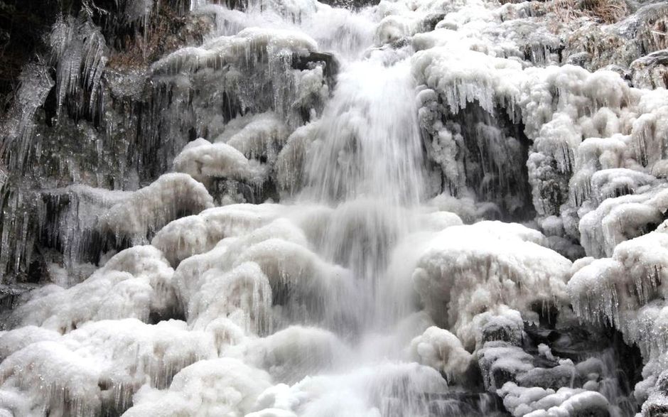 安徽黄山惊现冰瀑奇观 晶莹剔透洁白如玉