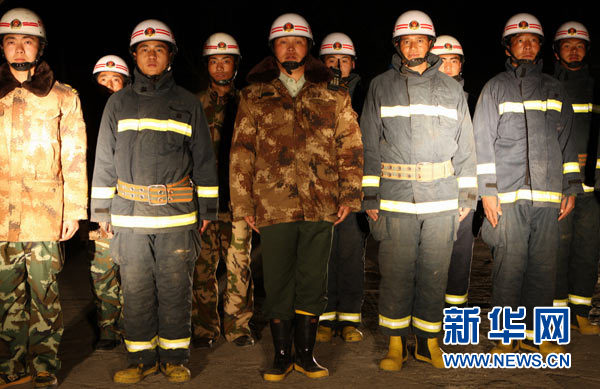 5月8日,在四川省甘孜藏族自治州炉霍县消防大队,却吉尼玛(中)带领着他的消防队员准备出发。 新华社记者 金立旺