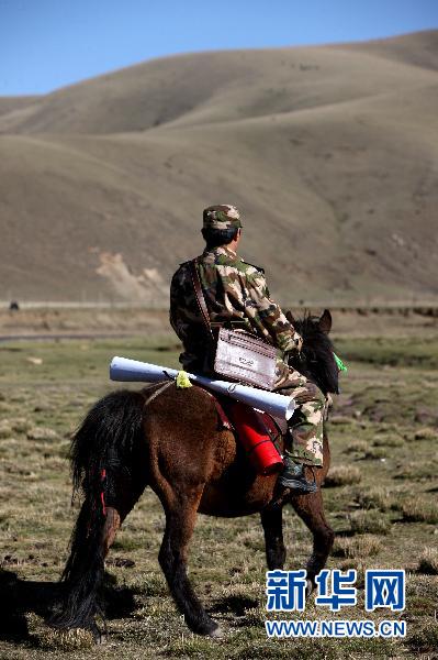 5月8日,带好灭火器、宣传挂图和干粮,却吉尼玛向最远的然育村走去。炉霍县有80个行政村,257个自然村,其中有一半还不通公路。最远的然育村距离县城有160多公里,其中70多公里只能靠骑马才能进入。 新华社记者金立旺