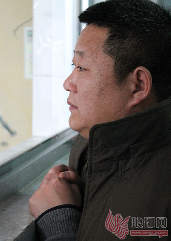 月14日,徐帆的父亲徐庆鹏在重症监护室外凝视着女儿。
