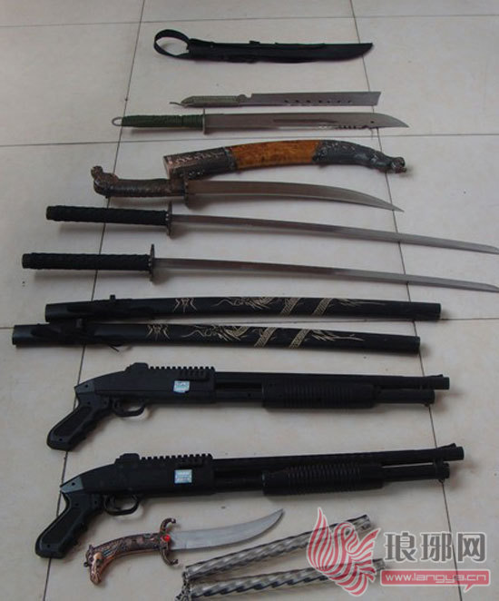 缴获的“黑社会”团伙的部分作案工具。
