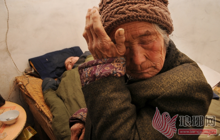 “有一年下雪天,俺娘去山里推水,滑到路沟里;还有一次,上山捡柴火,把脸都划破了……”肖丙伦说,快80岁的母亲患有高血压,为了收点粮食,夏天的时候还要到地里去干活,他躺在床上揪心又着急,唯恐母亲晕倒;为了不让母亲上山捡柴火,他不让母亲生火做饭,每天就吃开水泡煎饼,因为他怕母亲走远了会出事……除了过年吃了点菜,黄秀英和肖丙伦娘俩又吃了快一个月开水泡煎饼了。