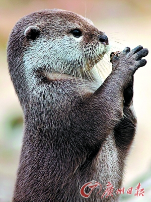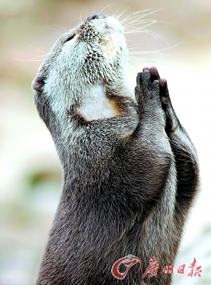 水獭直起身子,双爪合十。
