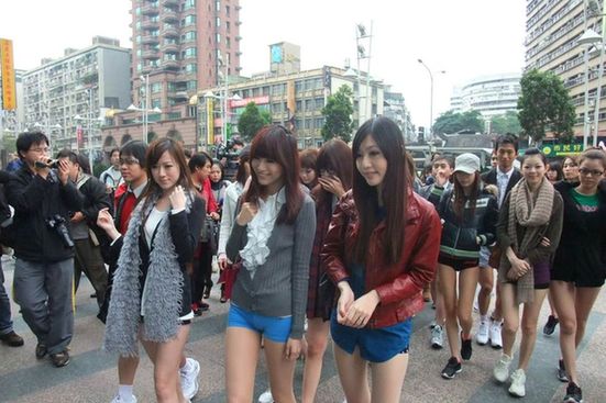 近日台湾正妹的“无裤日”让不少男士大饱眼福,20多名身材超赞的台湾正妹只穿底裤乘地铁引来乘客和路人围观,一双双美腿看得人眼花缭乱,心花怒发。