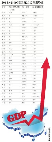 2011各省份GDP及2012预期增速