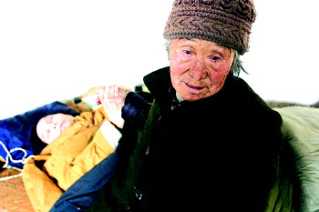 黄秀英的家十分简陋,小院的门正对堂屋门,一进院子就看到门里靠墙一张床,黄秀英50岁的病儿正躺在床上。虽是早春二月,屋里仍旧寒气逼人,病人竟睡在凉席上,连床褥子也没有,“多盖两床被子就不冷了。”他说。随行的村委负责人解释道,他是怕弄脏了褥子,拖累老母亲拆洗。