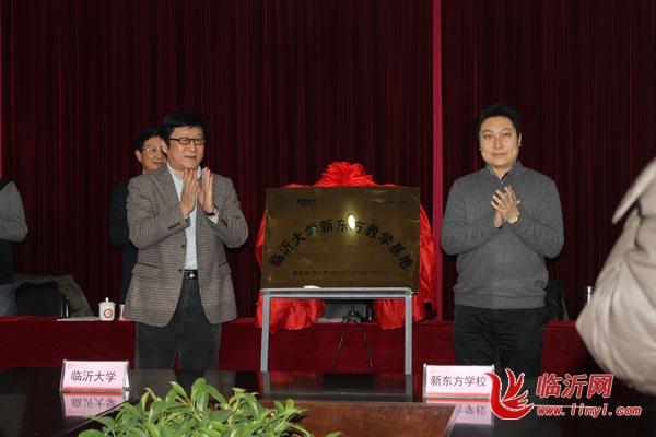 临沂网讯 2012月2月23日,临沂大学新东方教学基地揭牌仪式在临沂大学隆重举行,临沂大学与新东方签署战略合作协议,这标志着新东方教育正式落户临沂大学。临沂大学党委副书记谢亚非、副校长姜同松、副校长王勇、济南校新东方学校校长韩鹏、市场部主任赵令斌、国内部主任张一楠出席,临沂大学副校长姜同松主持揭牌仪式,临沂大学相关部门领导参加揭牌、签约仪式。