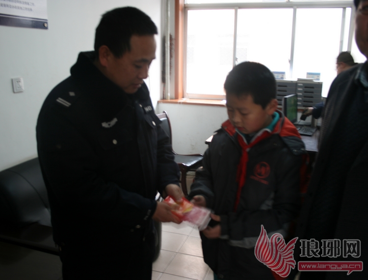 21日上午,李帅在老师的陪同下将捡到的巨款交给派出所民警