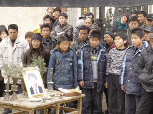 孩子们肃立在遗像前哀悼老师