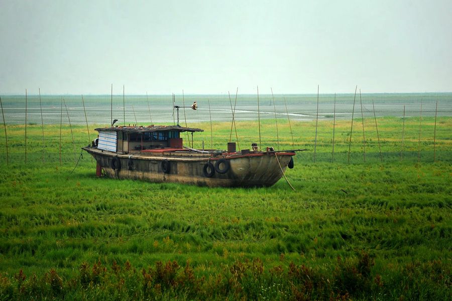 5月25日,江西省新建县南矶乡,一艘大渔船搁浅在鄱阳湖湖底草坪上,湖水干涸,湖草生长茂盛。鄱阳湖是中国最大的淡水湖,丰水年份水域面积最大可达4000平方公里以上,如今却因持续干旱严重“瘦身”。中心湖区荒草疯长,鱼蟹死伤一地。新建县南矶乡,地处鄱阳湖中心区域。往年每到汛期,这里就成了孤岛,出行只能靠船,如今却成了一片“草原”。靠养殖为生的附近乡民损失惨重,初步预算超过1500万元。IC