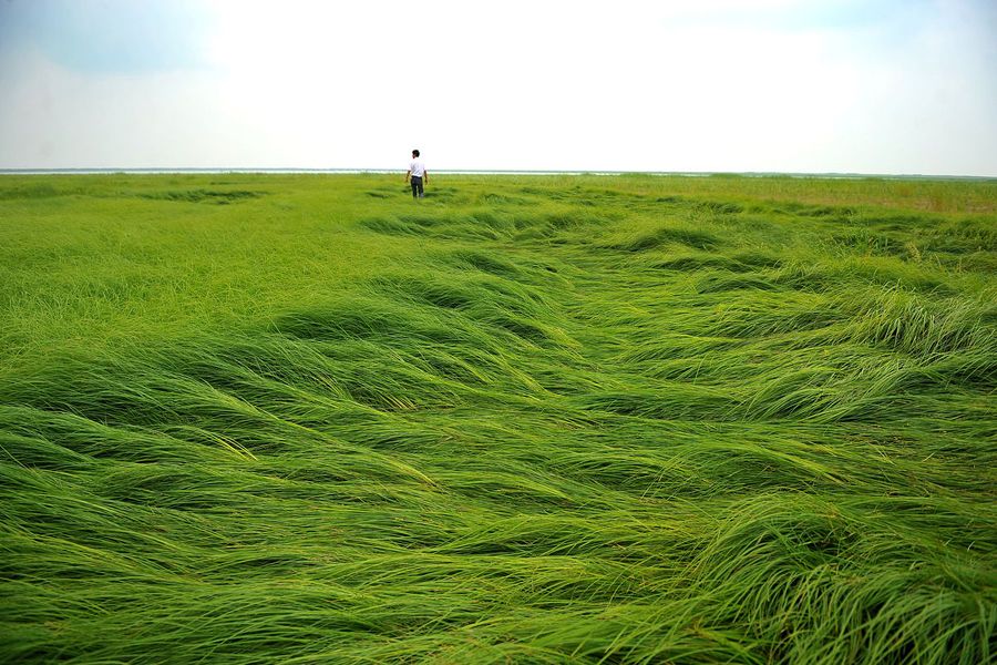 5月25日,江西省新建县南矶乡红卫村,村民万长柱承包的1万亩鄱阳湖水域干涸,湖草长到一尺多高,如同身处大草原。IC