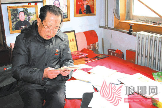 马春山在翻阅以前书写的学雷锋日记。