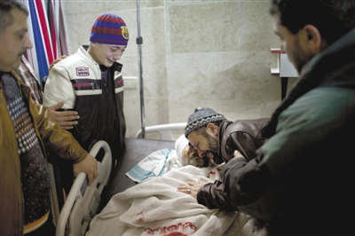 7日,叙利亚北部伊德利卜,一名男子在冲突中身亡,家属在医院痛哭,他们称死者是被叙政府军狙击手射杀。