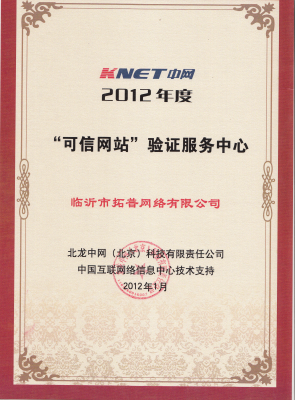 为营造健康、和谐、可持续发展的商业环境,维护用户的合法权益,由中国互联网络信息中心(CNNIC)为“可信网站”验证服务提供技术支持,北龙中网(北京)科技有限责任公司负责“可信网站”验证服务注册管理,保证第三方认证网站信息的正确性、安全性所建立的验证服务体系。凡在临沂地区的网站均可以提出申请,由临沂市拓普网络有限公司对向北龙中网(北京)科技有限责任公司提交的“可信网站”申请验证进行审核,交由北龙中网(北京)科技有限责任公司确认。