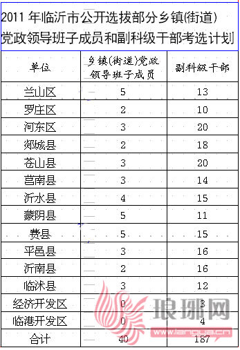 附:2011年临沂市公开选拔部分乡镇(街道)党政领导班子成员和副科级干部考选计划
