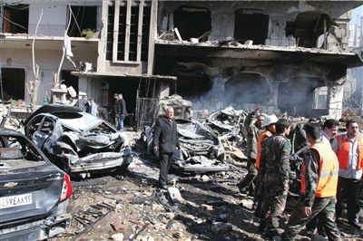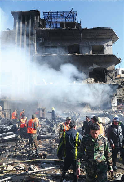 在大马士革安全局刑事分局前,建筑的正门已被炸得面目全非,地上到处是砖石瓦砾。大约有30辆汽车被炸毁,大部分是安全部门的专用车,车上死者血肉模糊。