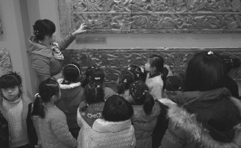 上图:小学生在临沂市博物馆参观。
