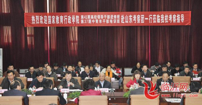 临沂网讯 3月15日-16日,由国家教育行政学院学校管理教研部主任赵庆典教授,考察团团长、江南大学党委书记武贵龙带队的国家教育行政学院第41期高校领导干部进修班和第37期中青年干部培训班赴山东考察团来临沂参观考察,并访问了临沂大学。考察期间,临沂市委副书记李峰,市委常委、市委秘书长李沂明,平邑县县委书记丰程秀,沂南县县委书记刘淑秀分别会见了考察团一行。