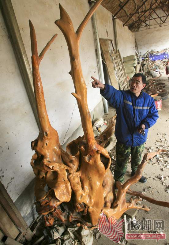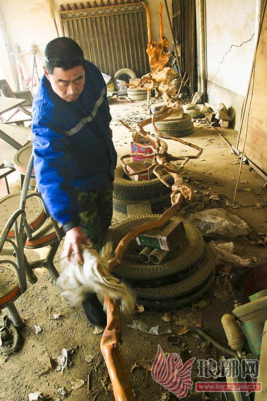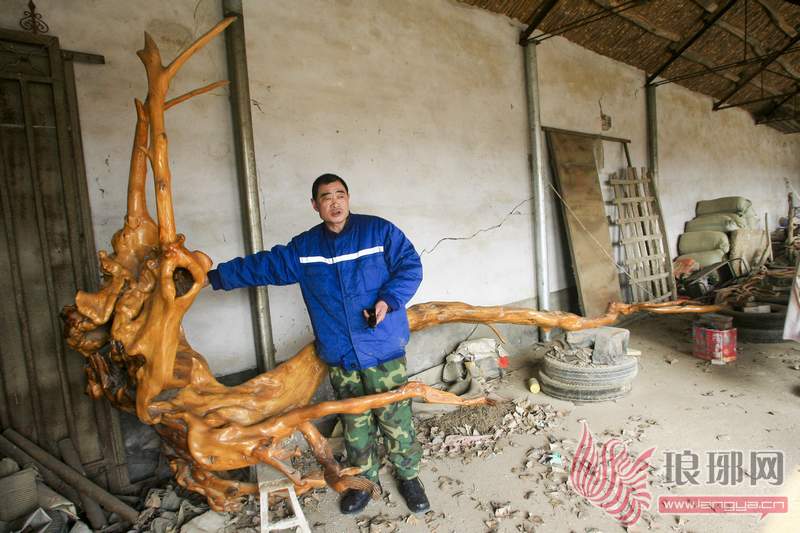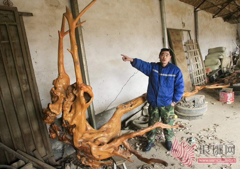 尤先生告诉记者说,这是一棵枫杨树的树根,是他在村里小山坡下种树时候挖到的,当时这棵树已经被砍掉,只剩下了树墩。“我原本打算把这个树墩刨下做把椅子,没想到,在挖的过程中发现,这树根看上去很像龙的骨架,所以我就把它全部挖了出来。”