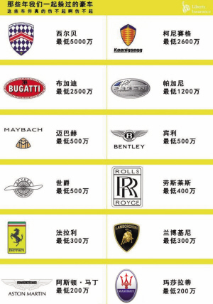 “宝马、奔驰都认识,但有些豪车还是认不得。”柳勇军说,他找朋友帮忙搜集了一下豪车车标,也打听了一下价格,才知道原来宝马、奔驰这些车在豪车中算是便宜的了,比如一辆布加迪最低要2500万元,一辆西尔贝最低要5000万元,“我开了这么多年车,有些车名都没有听过,要是随便碰一下,修补至少上百万元,真是伤不起啊。”