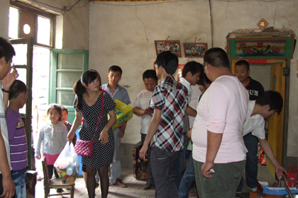 因时间仓促群管理员组织了一小批爱心人士到了文中的主人翁小洪周和他的父亲家,并送去米面、鸡蛋、牛奶、方便面等生活必需品。据本网记者了解,小洪周的父亲刘德轩在去年九月份晚上回家的路上发生车祸,头部严重受伤,右侧头部的一块头骨已经完全和头部分离。由于无钱做手术刘德轩分离的头骨至今仍然保存在医院的冰柜里。因为付不起医药费,他提前出院。记者看到,病床上的小洪周的父亲右脑已经已鼓出一个很大的包,头部已有些变形。小洪周的大姑说,那是因为脑积水造成的,如果还不能做手术,后果可想而知。