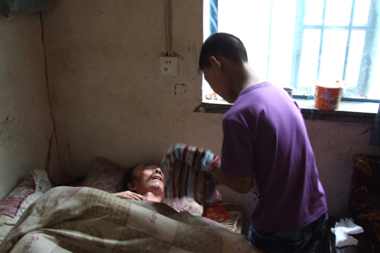 小洪周的母亲周雄辉在他3岁时就离家出走,至今杳无音信。为了照顾父亲,小洪周不得不离开校园。记者问道小洪周有什么愿望时,小洪周眼里泛出泪花,“我想上学,我想能像别的孩子那样能在教室里读书,学习知识,为爸爸治病。”据小洪周的大姑说,洪周不能去学校,自己就经常拿出以前的书翻翻看看。